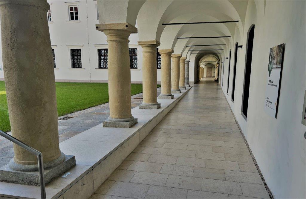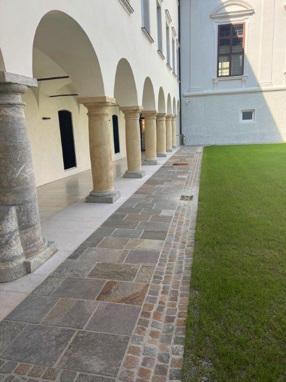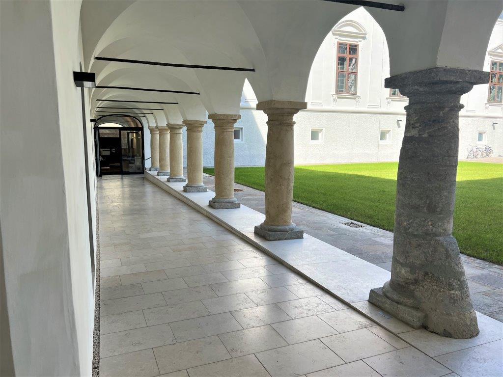 Wie bereits in unserem Newsbereich angekündigt, durften wir im Grazer Minoritensaal Boden und Säulen erneuern bzw. restaurieren. Insgesamt haben wir 17 Säulen renoviert und im Kreuzgang den kroatischen Kalkstein Kanfanar (Oberfläche gebürstet) verlegt. Im Saal selbst kam der elegante, italienische Stein Pietra Piasentina fein geschliffen zum Einsatz.