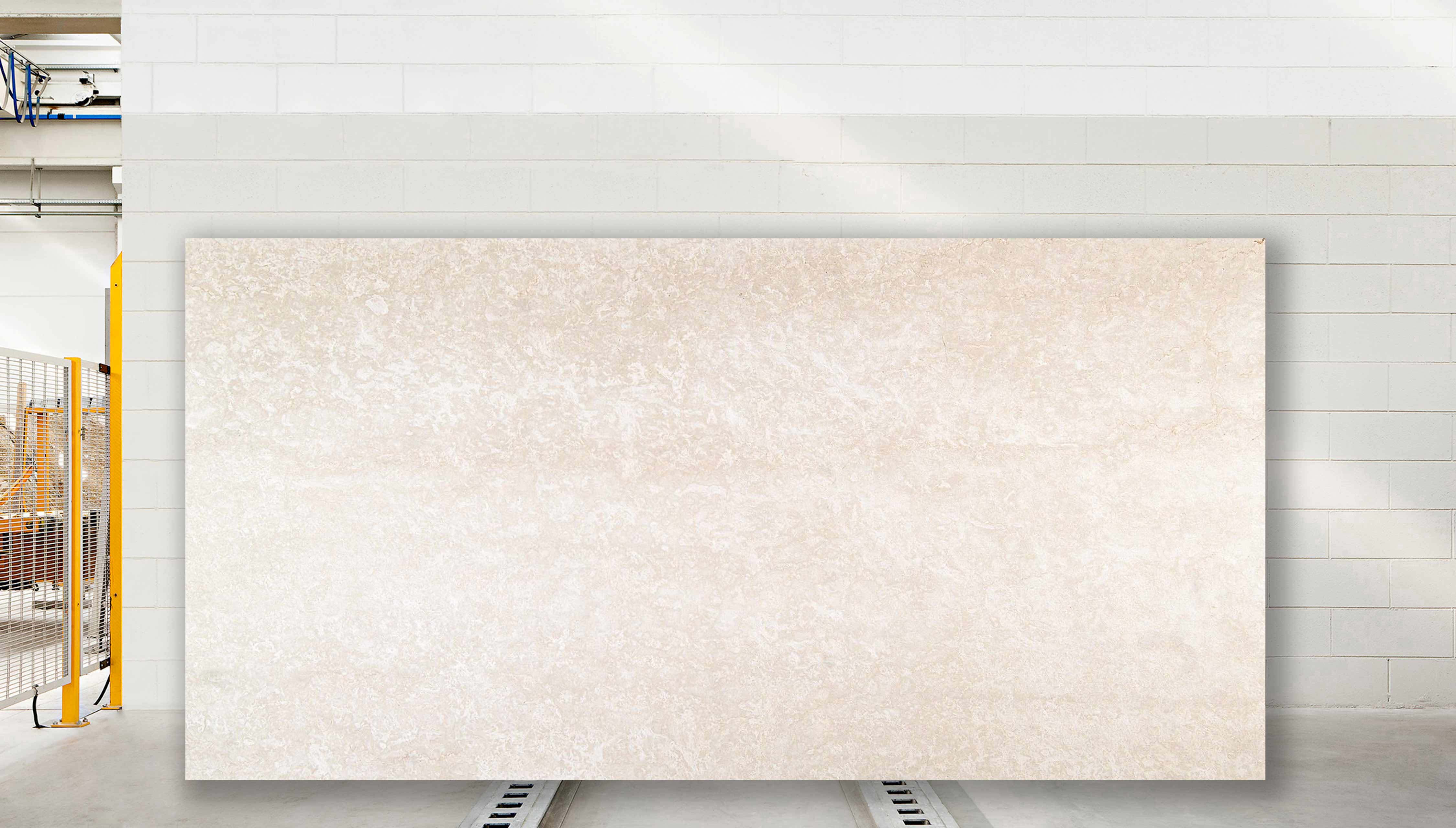 Der beige Marmor aus Italien ist durch seine gewolkte und uniforme Struktur besonders geeignet für großflächige Anwendungen im Innen- und bedingt im Außenbereich.