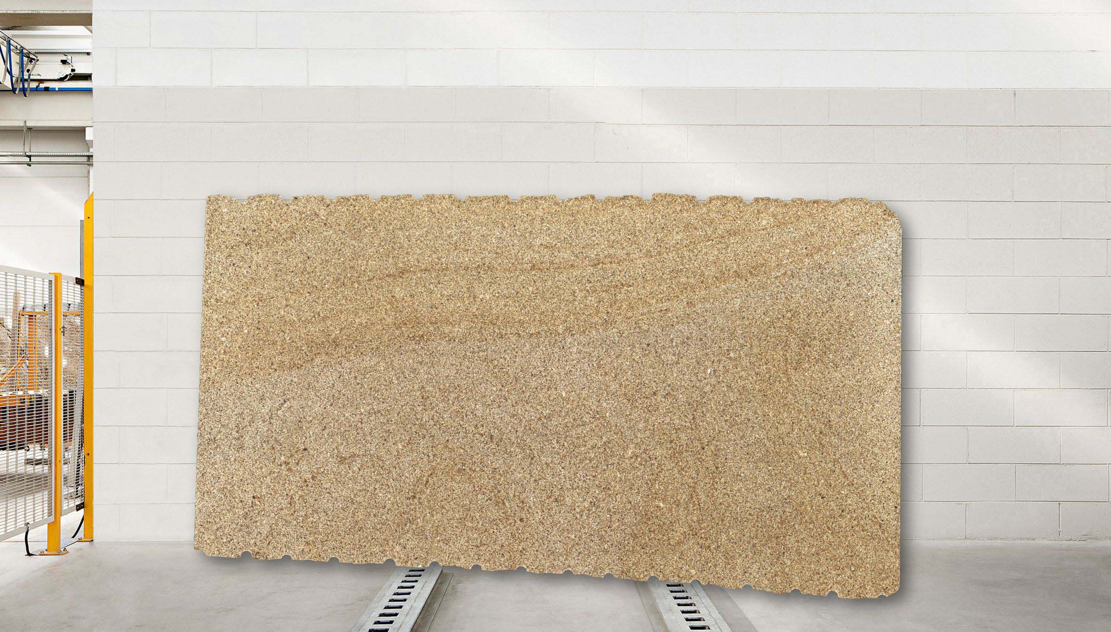 Der gelbe Granit aus Deutschland ist durch seine uniforme Struktur besonders für großflächige Anwendungen im Innen- und Außenbereich geeignet. Dank seiner Säurebeständigkeit eignet sich das Material unter anderem auch sehr gut für Küchenarbeitsplatten.