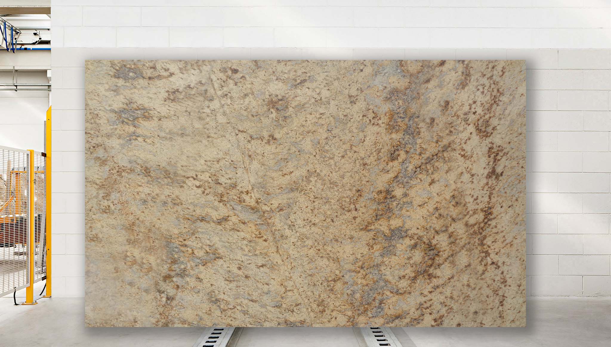 Der gelbe Granit aus Indien ist durch seine gewolkte Struktur besonders geeignet für großflächige Anwendungen im Innen- und bedingt im Außenbereich. Dank seiner Säurebeständigkeit eignet sich das Material unter anderem auch sehr gut für Küchenarbeitsplatten.