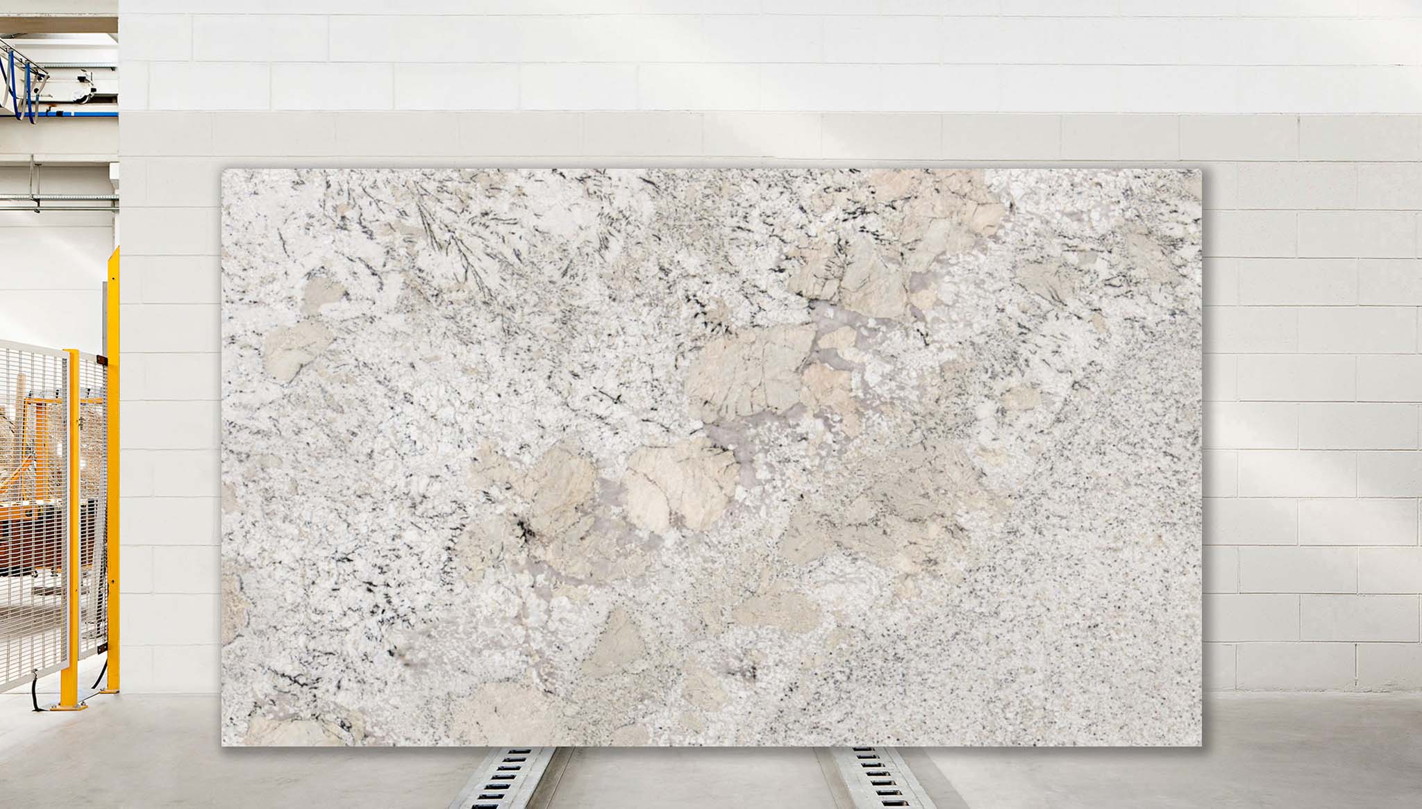 Aufgrund seiner bewegten Struktur ist jede Platte des weißen Granits aus Ägypten einzigartig – wie ein Kunstwerk der Natur. Dank seiner Säurebeständigkeit ist das Material auch geeignet für Küchenarbeitsplatten und viele andere Anwendungen im Innen- und bedingt im Außenbereich.