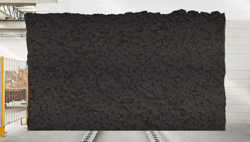Aufgrund seiner bewegten Struktur ist jede Platte des dunkelgrauen Granits aus Brasilien einzigartig, wie ein Kunstwerk der Natur. Dank seines hohen Härtegrades und seiner Säurebeständigkeit eignet sich das Material unter anderem auch ausgezeichnet für Küchenarbeitsplatten und viele andere Anwendungen im Innenbereich.