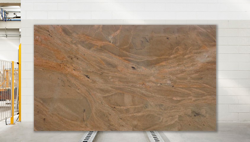 Der gelbe-braune Granit aus Namibia ist durch seine gewolkte Struktur besonders geeignet für großflächige Anwendungen im Innen- und Außenbereich. Dank seiner Säurebeständigkeit eignet sich das Material auch sehr gut für Küchenarbeitsplatten und viele andere natürlich elegante Anwendungen.
